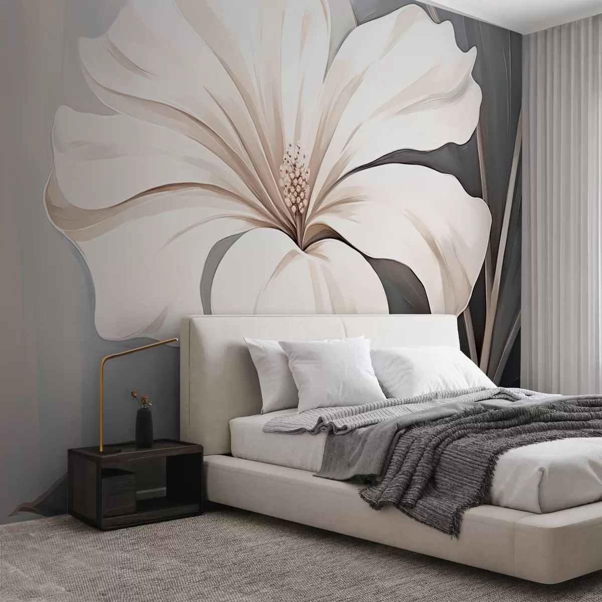 Fototapety Velký bílý květ s okvětními lístky na modrošedém pozadí Č. w09033