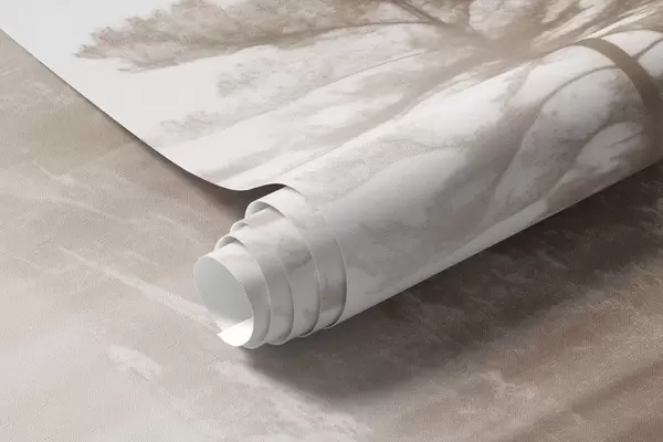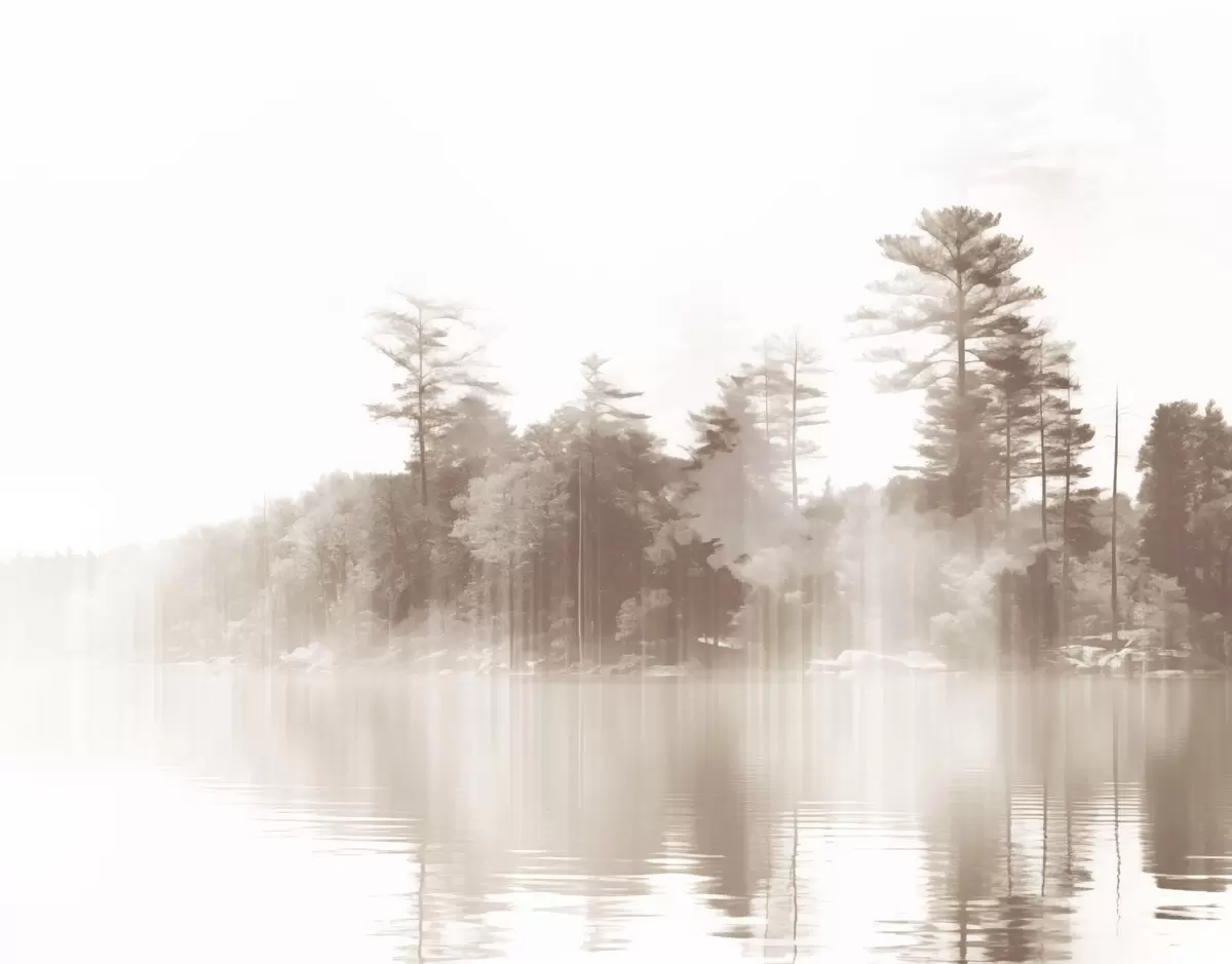 Fototapety Abstraktní minimalistická texturovaná krajina s jezerem a odrazy stromů ve vodě v béžových a bílých odstínech Č. w09058v1