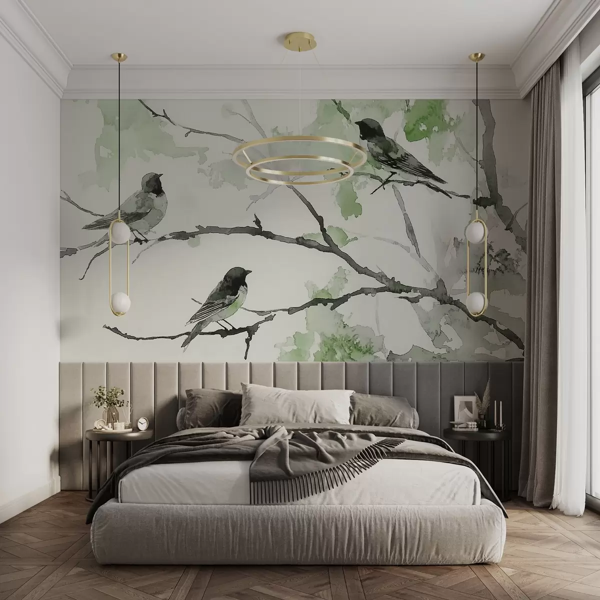Fototapety Ptáci na větvích stromů ve stylu akvarelu Č. w09064v3