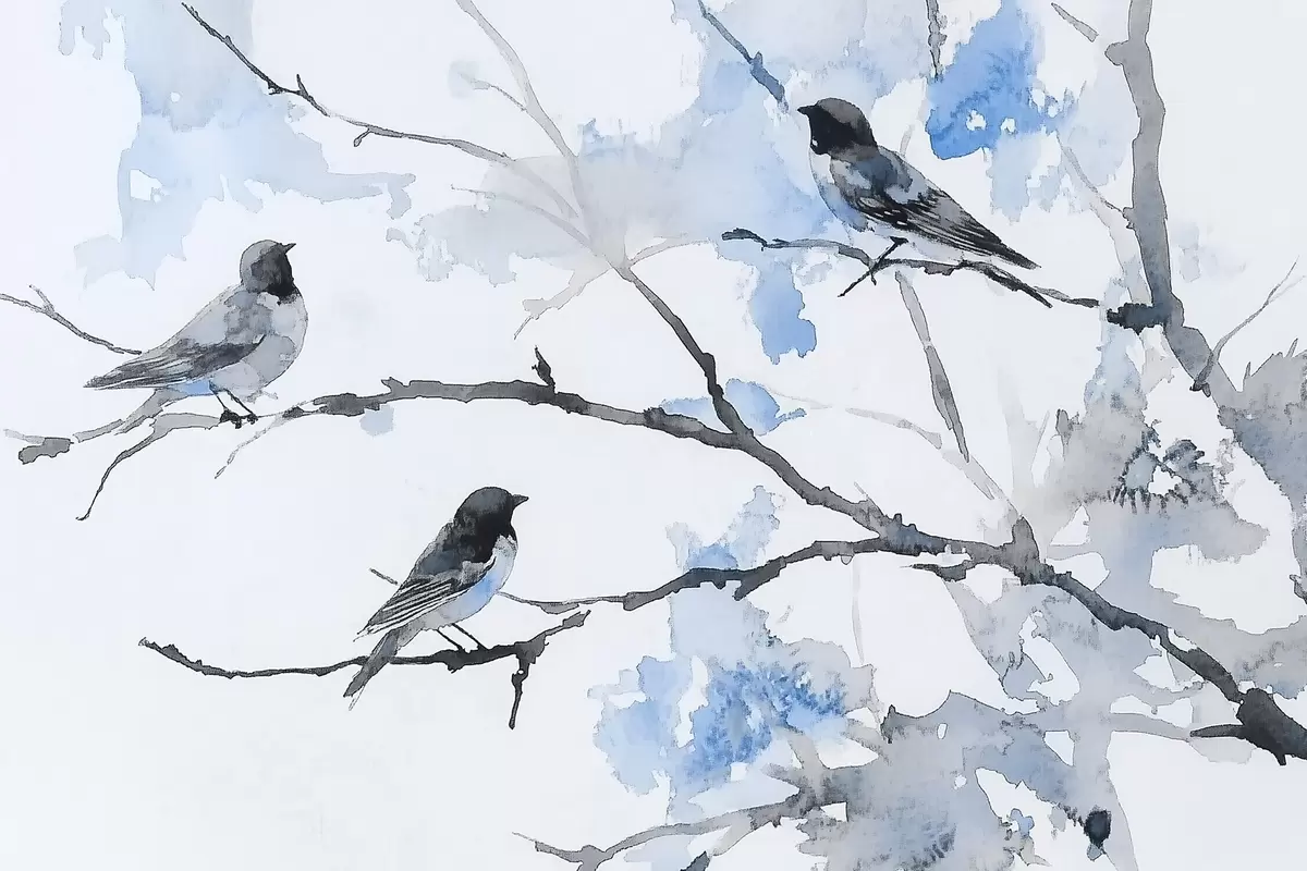 Fototapety Ptáci na větvích stromů ve stylu akvarelu Č. w09064v4
