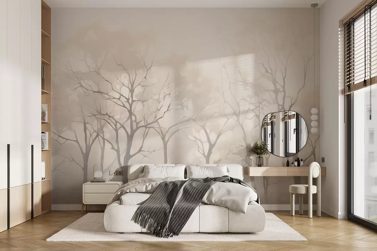 Fototapety Monochromatické vintage stromy v mlze Č. w09065