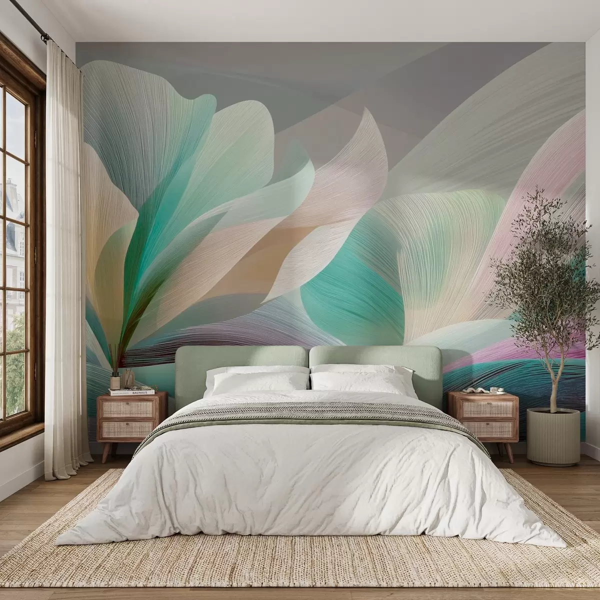 Fototapety Elegantní abstrakce s hladkými křivkami připomínajícími květinu a vlny Č. w09075