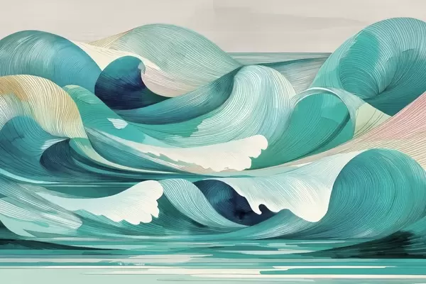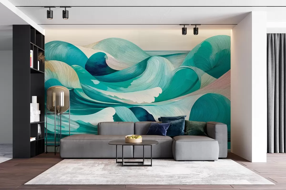 Fototapety Vlny s čarami v modré a tyrkysové barvě Č. w09078