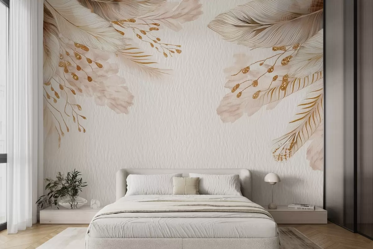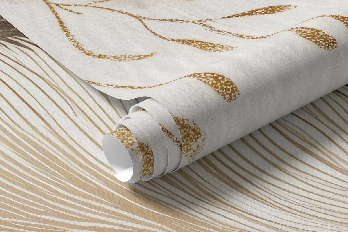Fototapety Akvarelová tráva a peří v béžové a bílé barvě na papíře Č. w09079