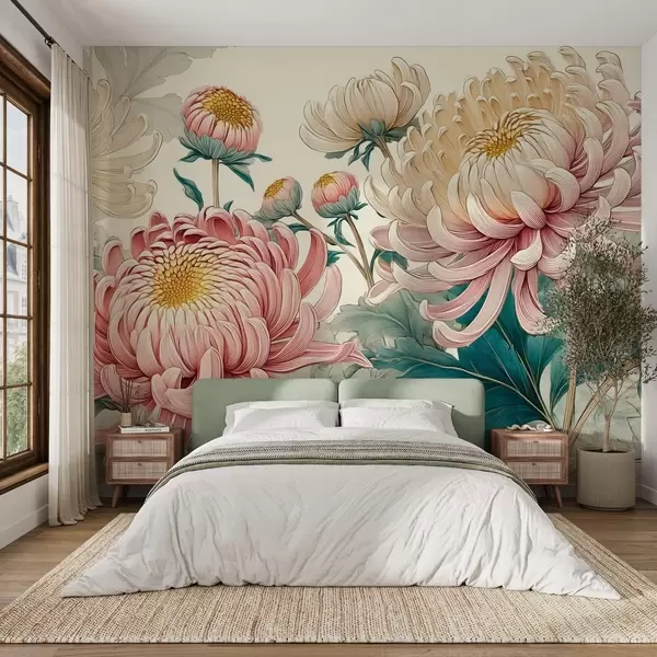 Fototapety Složitá malba bílých a růžových chryzantém Č. w09081