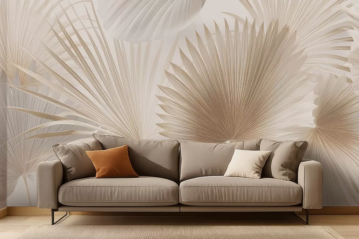Fototapety Měkké vějíře z tropických listů ve světle béžových a namodralých tónech Č. w09084