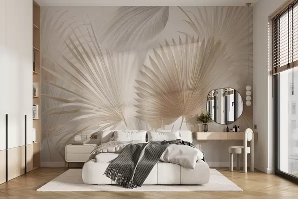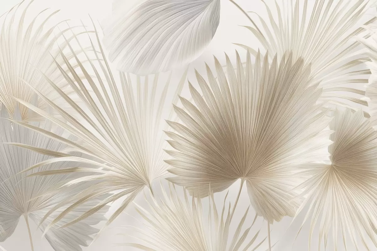 Fototapety Měkké vějíře z tropických listů ve světle béžových a namodralých tónech Č. w09084