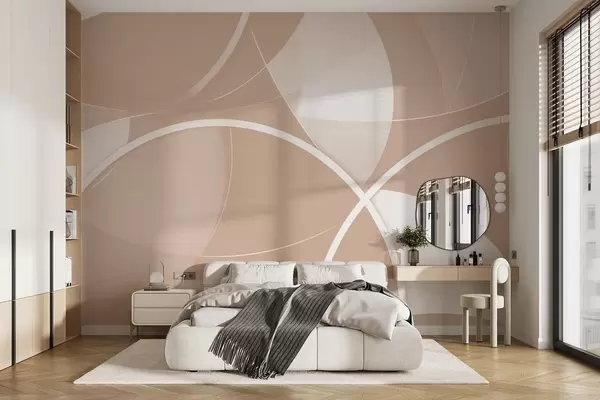 Fototapety Geometrická abstrakce v béžových a růžových tónech s kruhy a půlkruhy Č. w09085