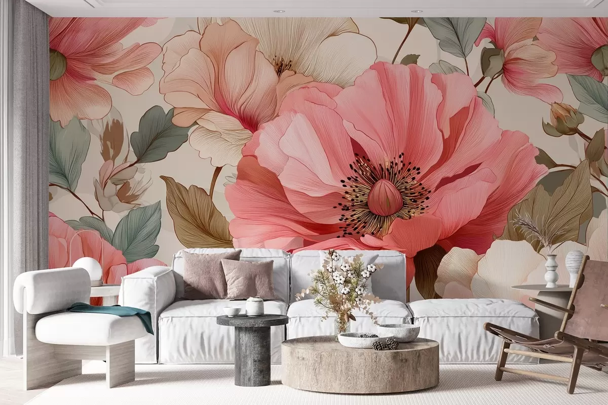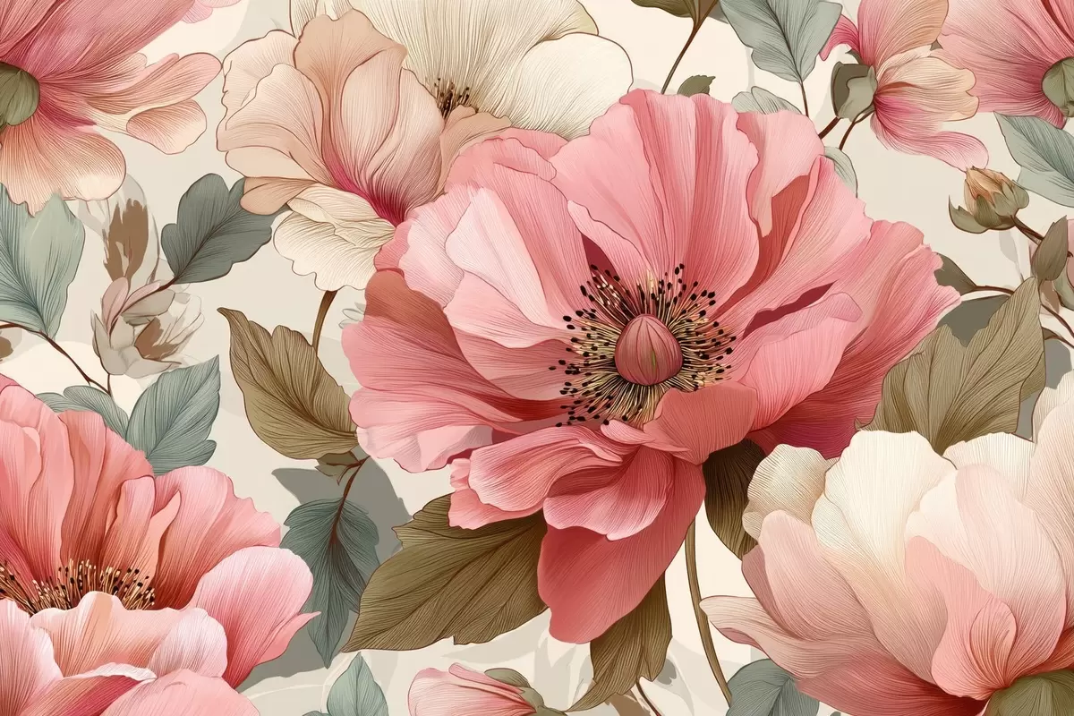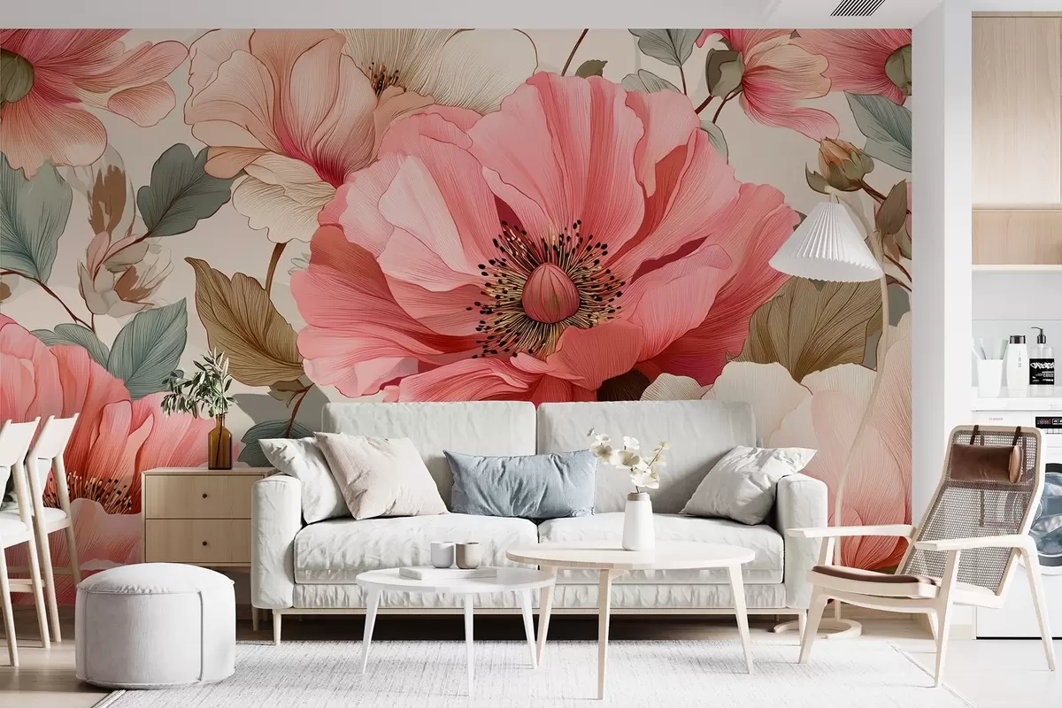 Fototapety Jemné máky s listy v červenorůžových odstínech Č. w09100