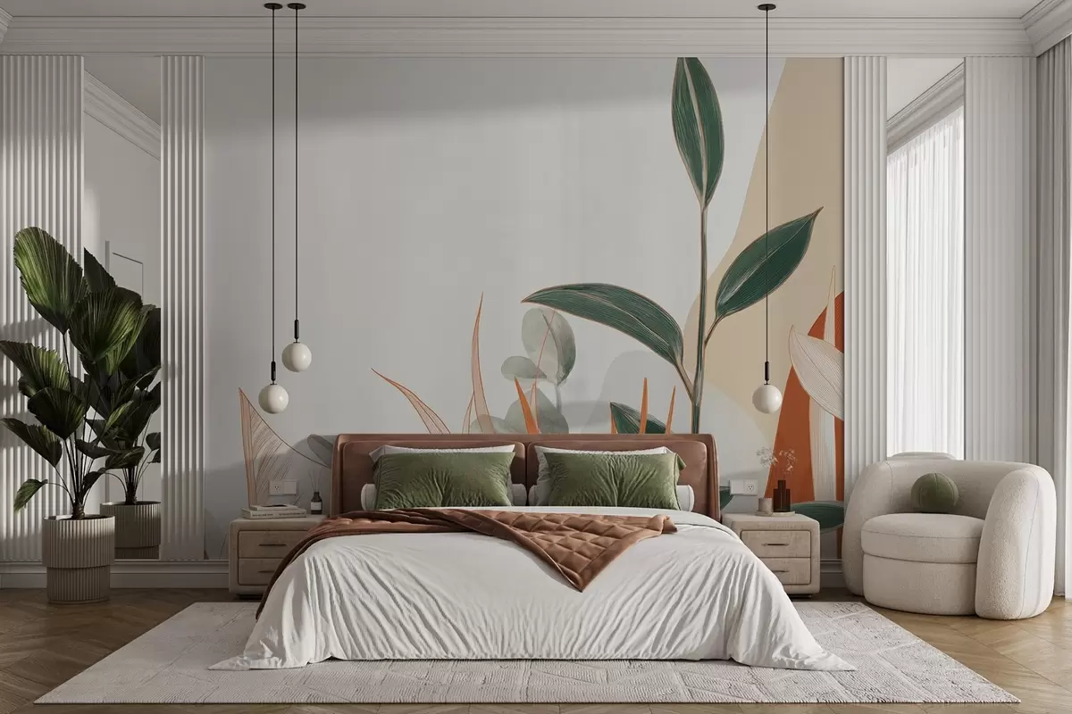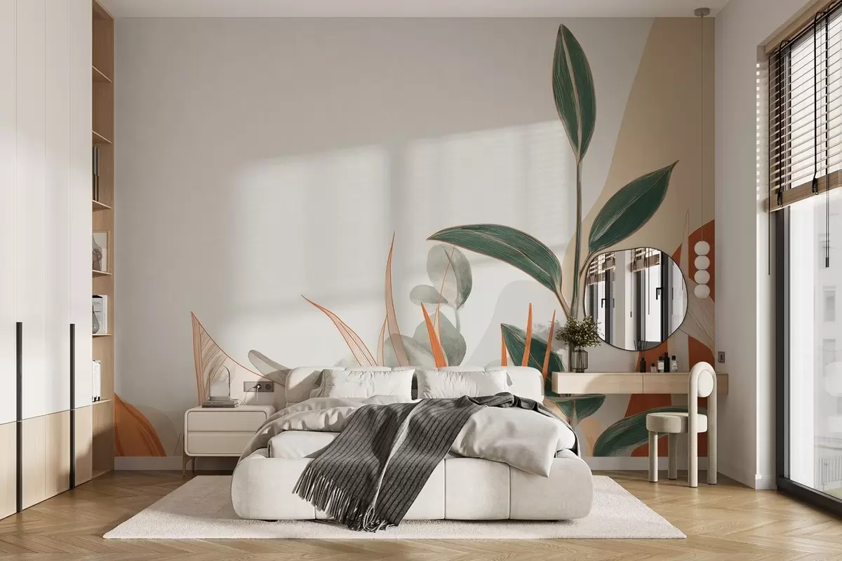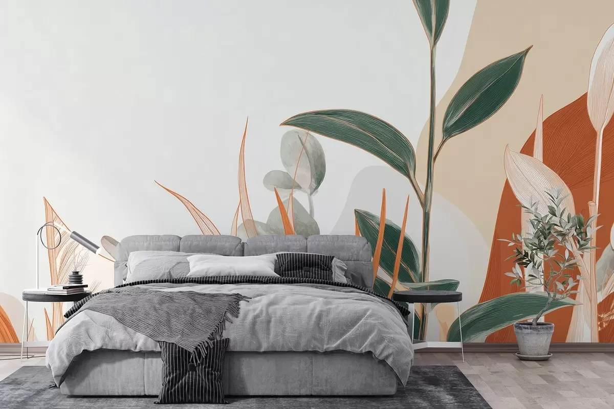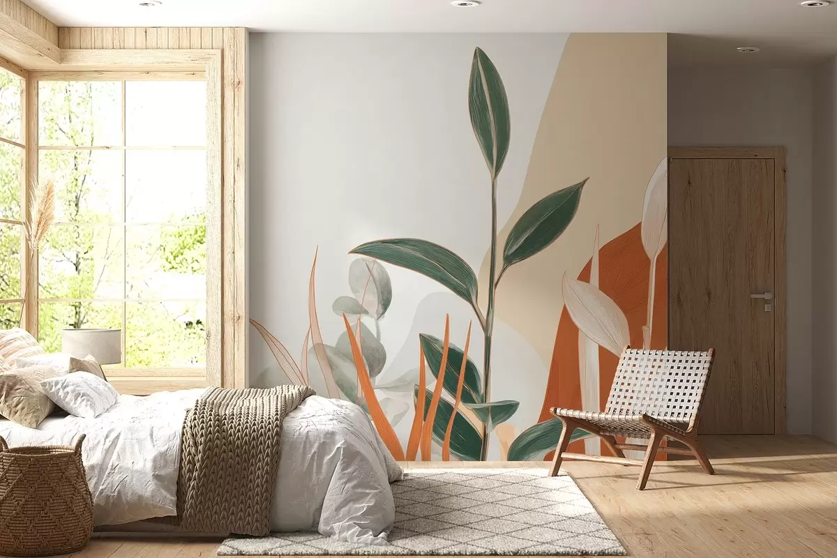 Fototapety Listy v béžových a zelených tónech Č. w09101