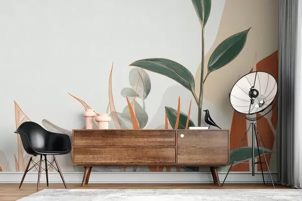 Fototapety Listy v béžových a zelených tónech Č. w09101