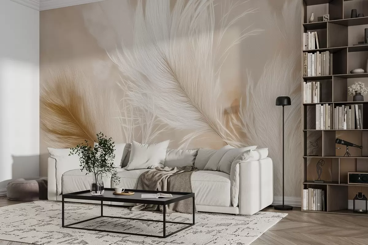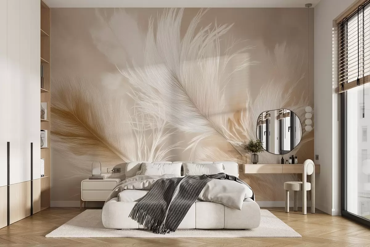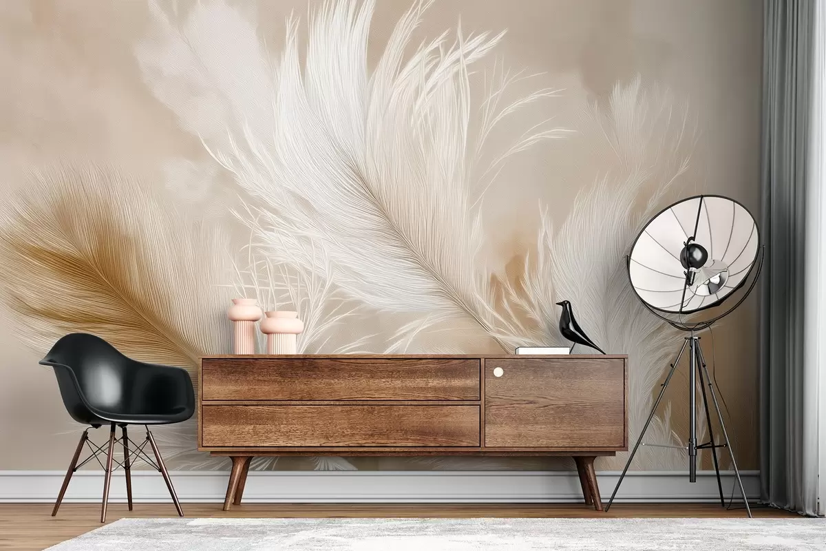 Fototapety Létající vzdušné peří na béžovém pozadí Č. w09102