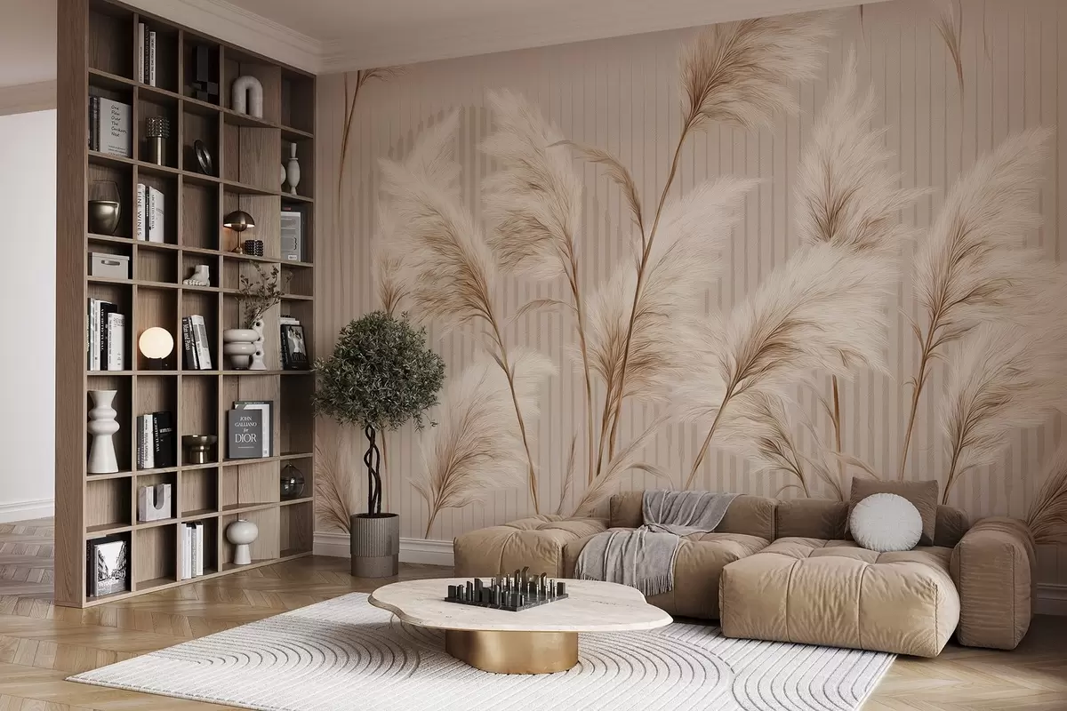 Fototapety Tráva pampas na pozadí čar v béžových tónech Č. w09104