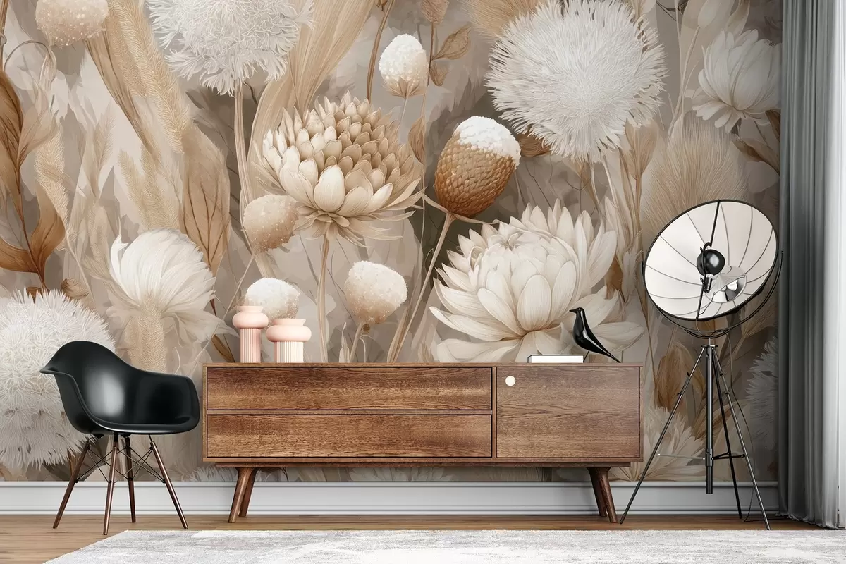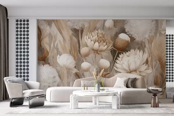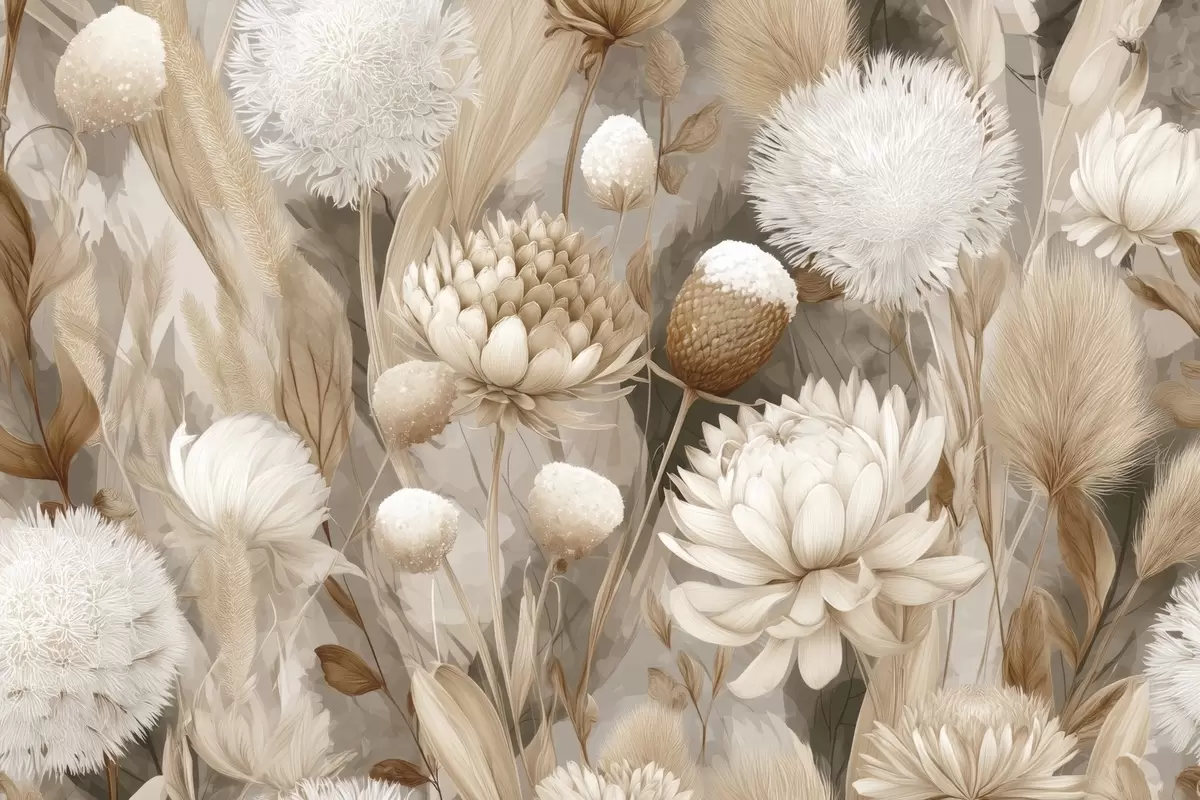 Fototapety Boho Harmony: Texturované květiny v béžových a krémových tónech Č. w09121