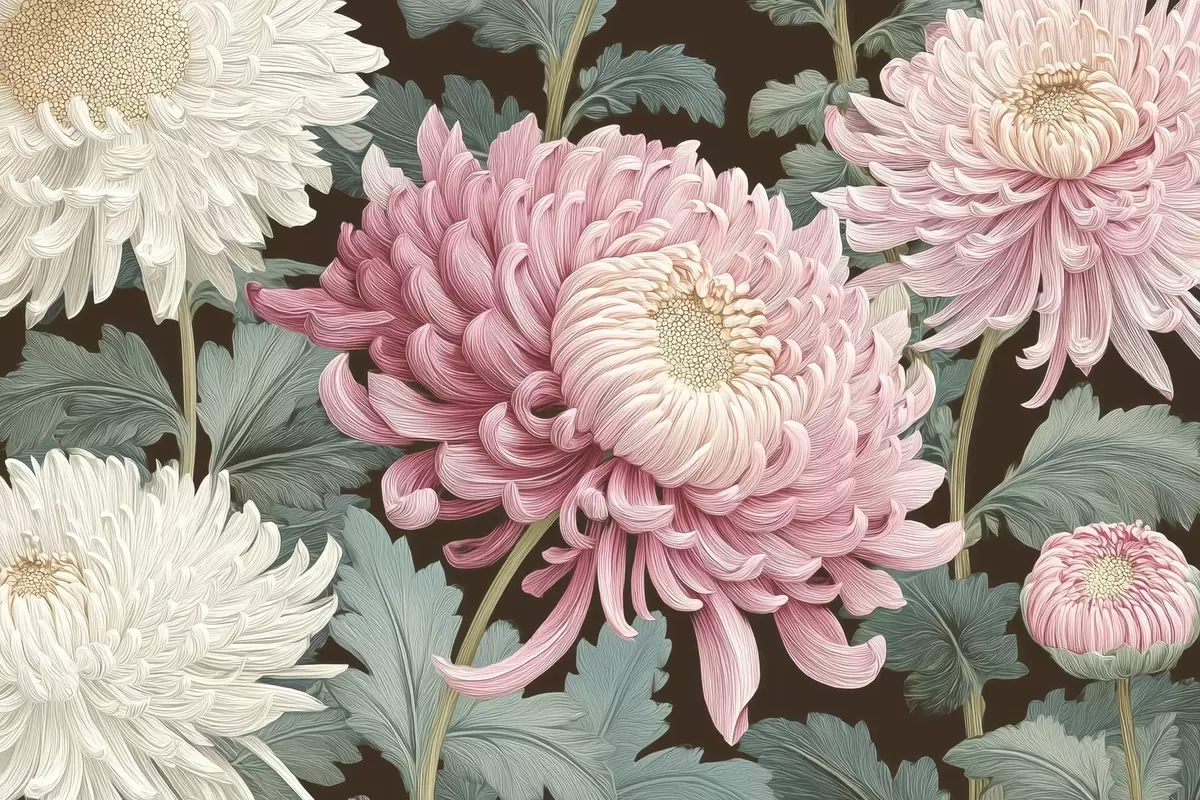 Fototapet Růžové a bílé velké orchideje s listy na tmavém pozadí w09125