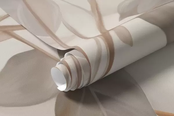 Fototapety Bavlněné květiny se stonky a listy ve světle hnědé barevné paletě, béžové pozadí, měkké a jemné, akvarelový styl Č. w09141