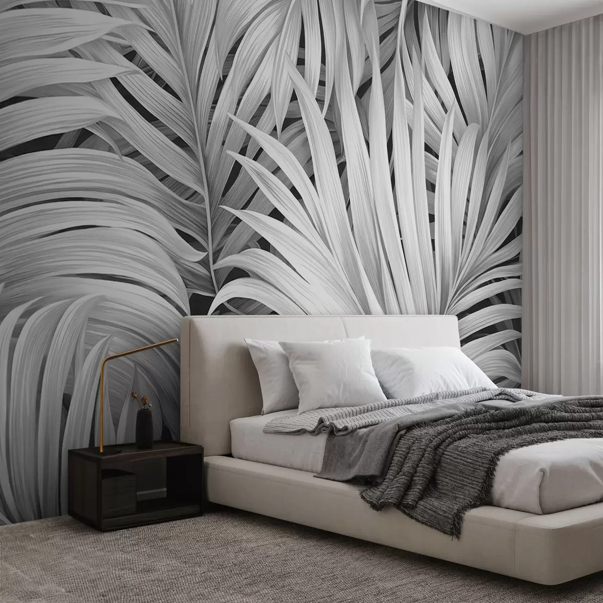Fototapety Jednobarevné texturované listy tropických palem vytvářející tropický a botanický potisk Č. w09145