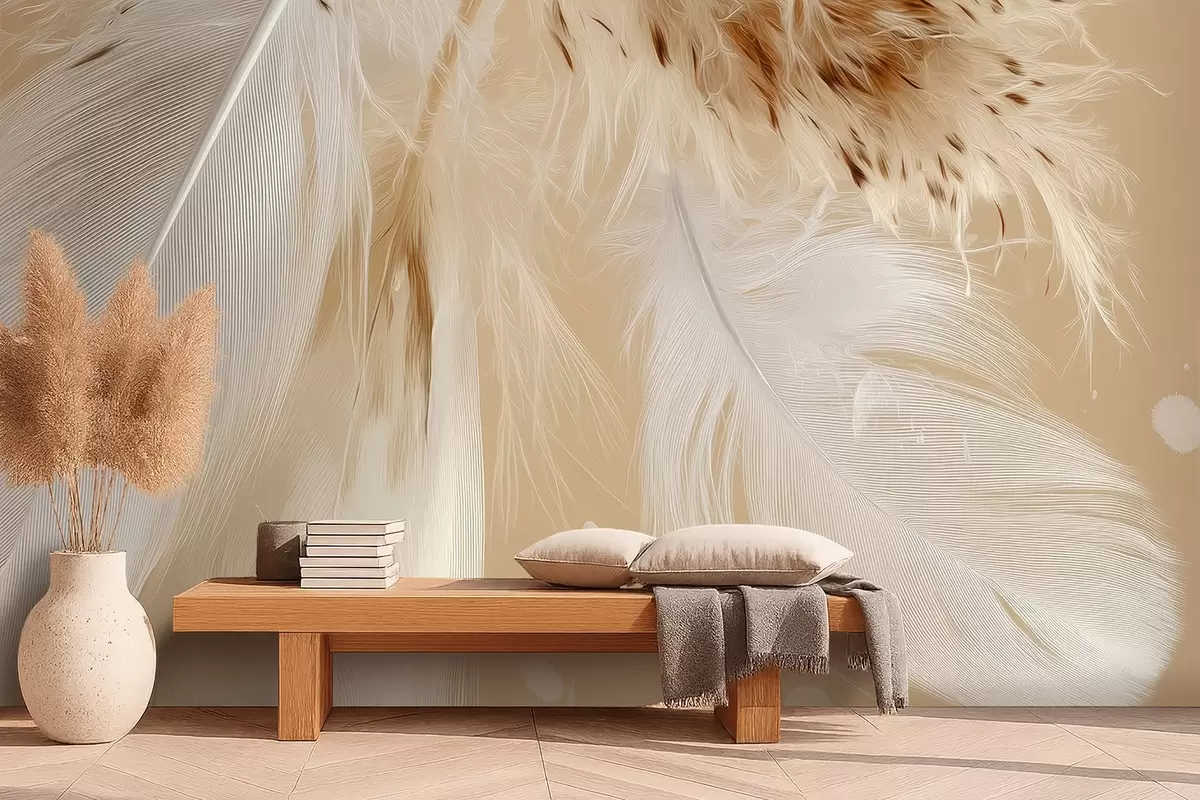 Fototapety Světlé peří v teplých béžových a bílých tónech Č. w09153