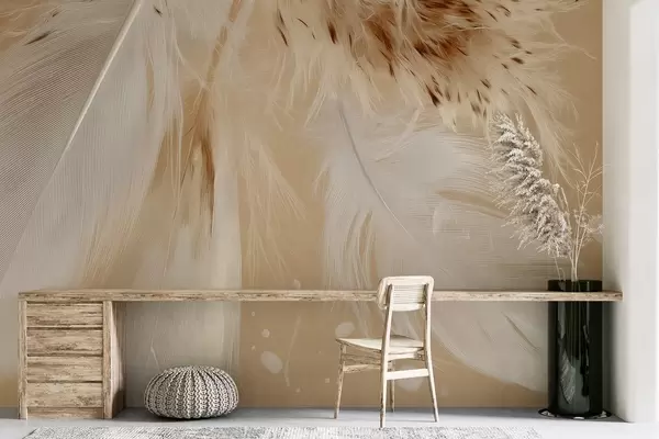 Fototapety Světlé peří v teplých béžových a bílých tónech Č. w09153