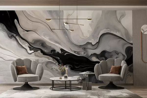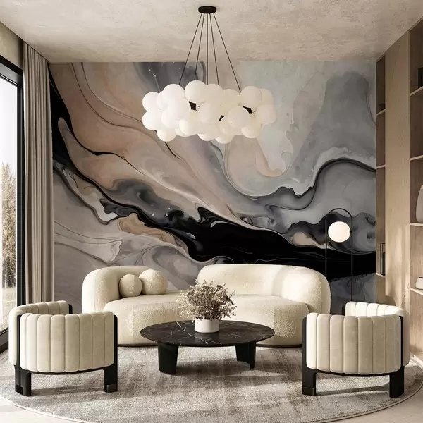 Fototapety Abstraktní malba s tekutou texturou v odstínech černé, bílé, šedé a béžové imitace mramoru Č. w09160