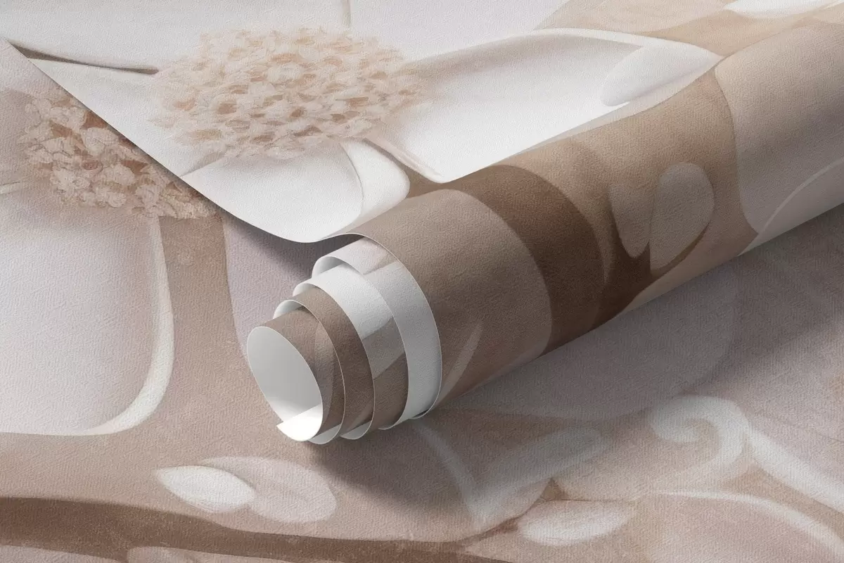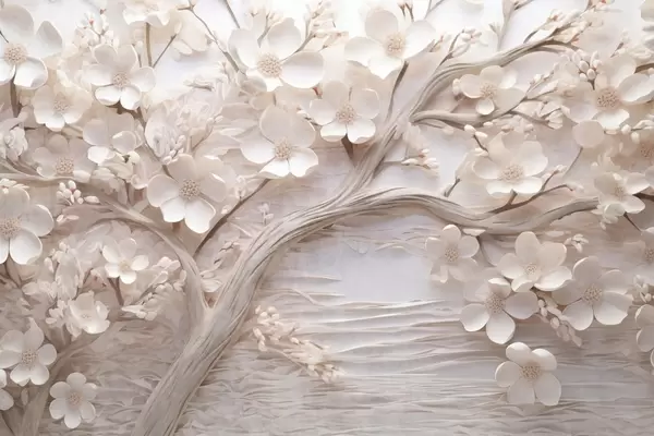 Fototapety Texturovaný strom s bílými květy a hnědým kmenem, pozadí je bílé s vodorovnými liniemi měkké osvětlení Č. w09166