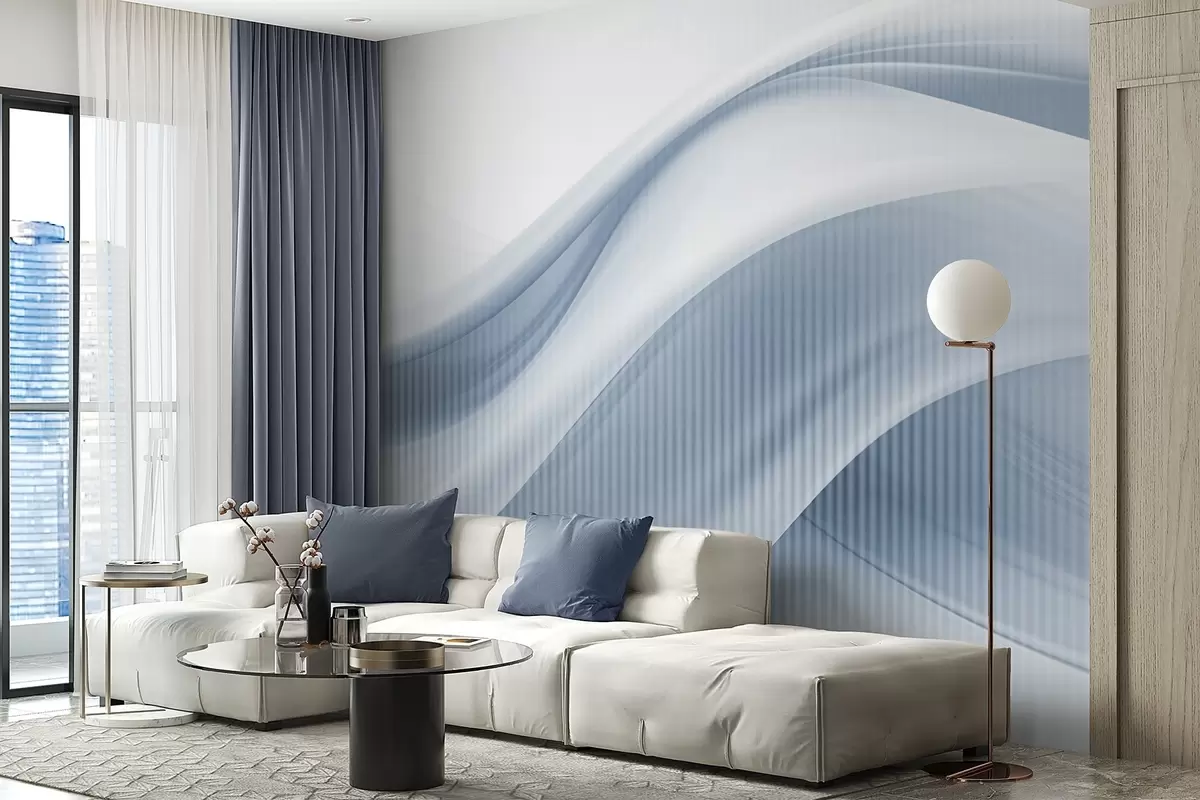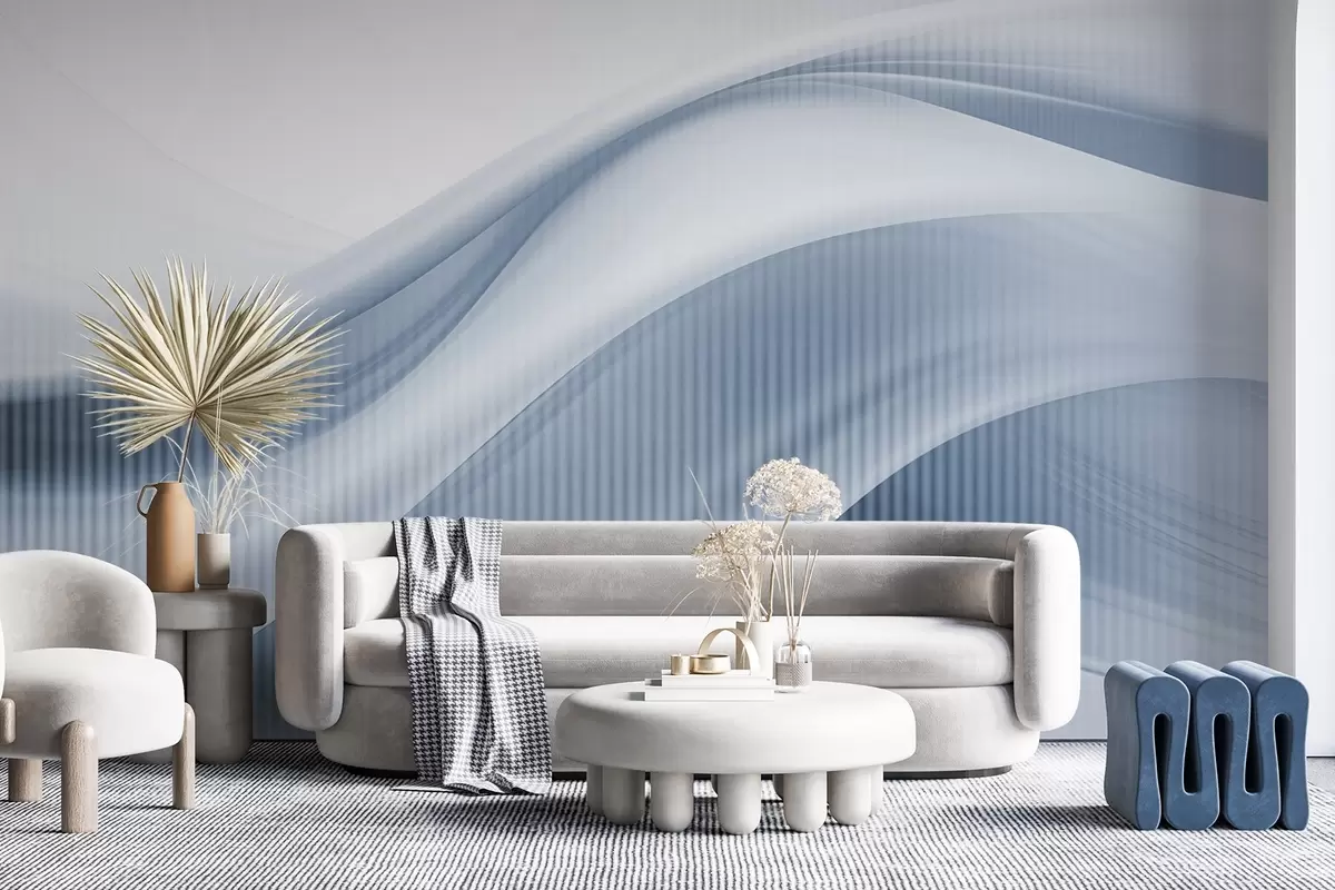 Fototapety Abstraktní potisk s plynulými liniemi a jemnými svislými pruhy, které vytvářejí pocit pohybu a hloubky, modrá paleta Č. w09189v1