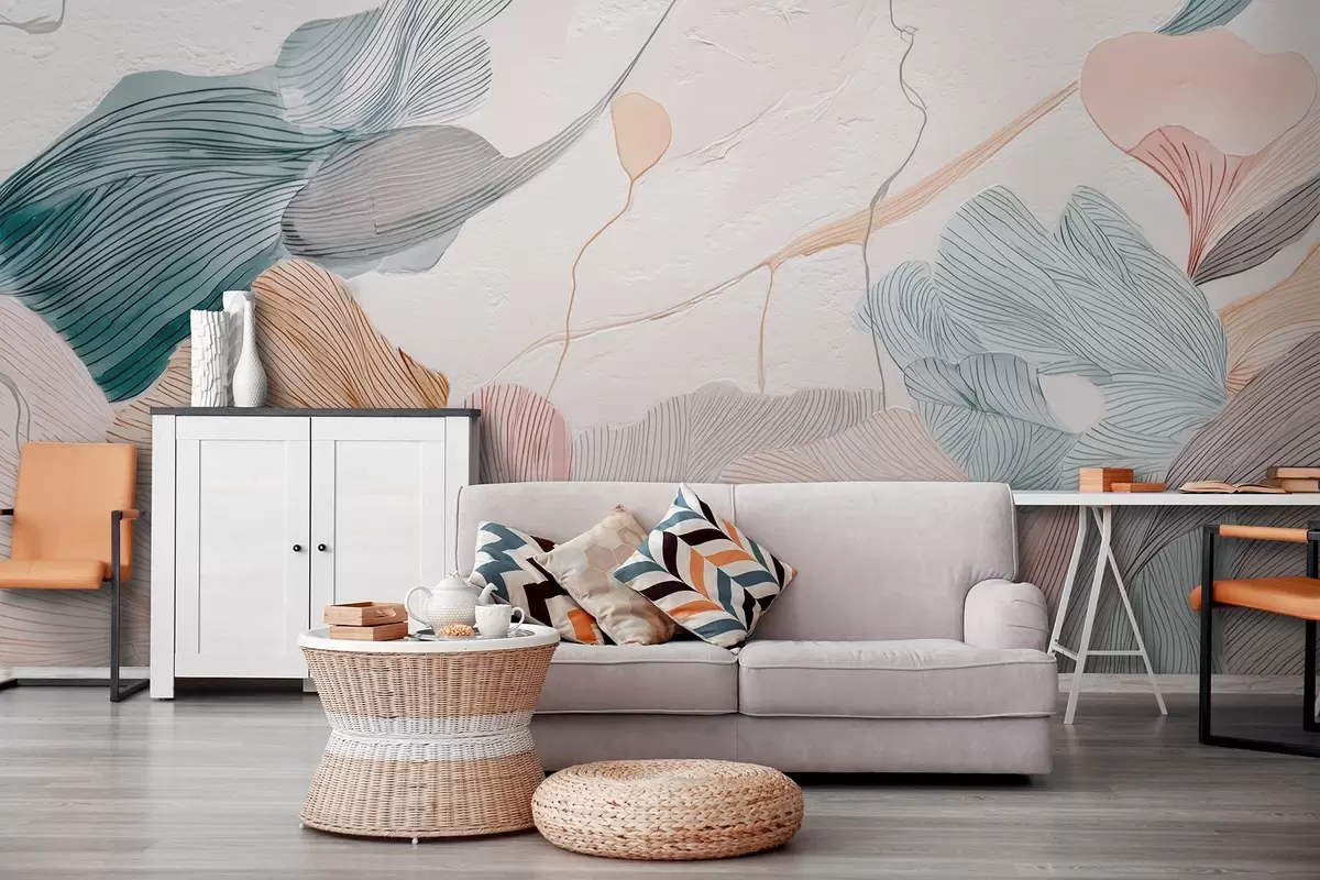 Fototapety Abstraktní grafické listy v teplých pastelových tónech Č. w09222