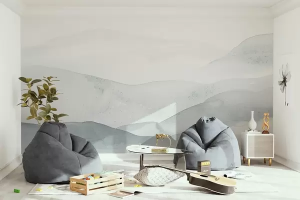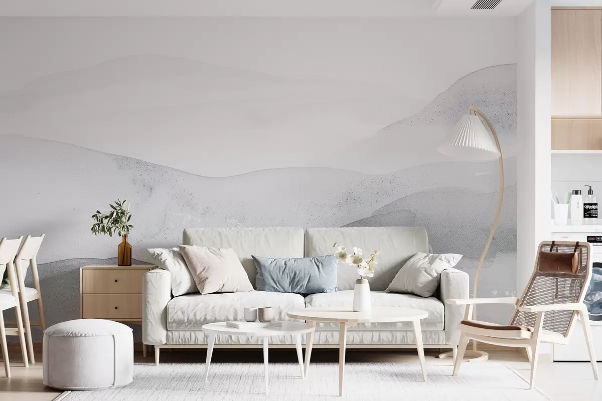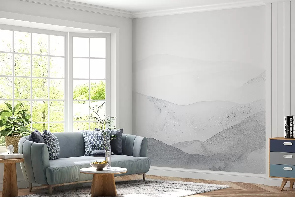 Fototapety Minimalistické mlhavé hory v jemných modrých odstínech Č. w09223v2
