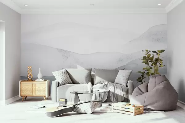 Fototapety Minimalistické mlhavé hory v jemných modrých odstínech Č. w09223v2