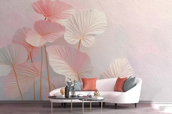 Fototapety Elegantní velké tropické listy v jemných růžových a modrých odstínech Č. w09252