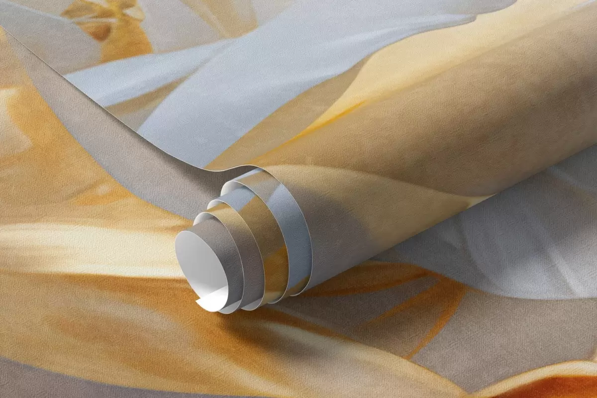 Fototapety Bílé strukturované růže se žlutými stonky a listy, měkké osvětlení, světlé pozadí s rozmazanými květinovými tvary Č. w09258