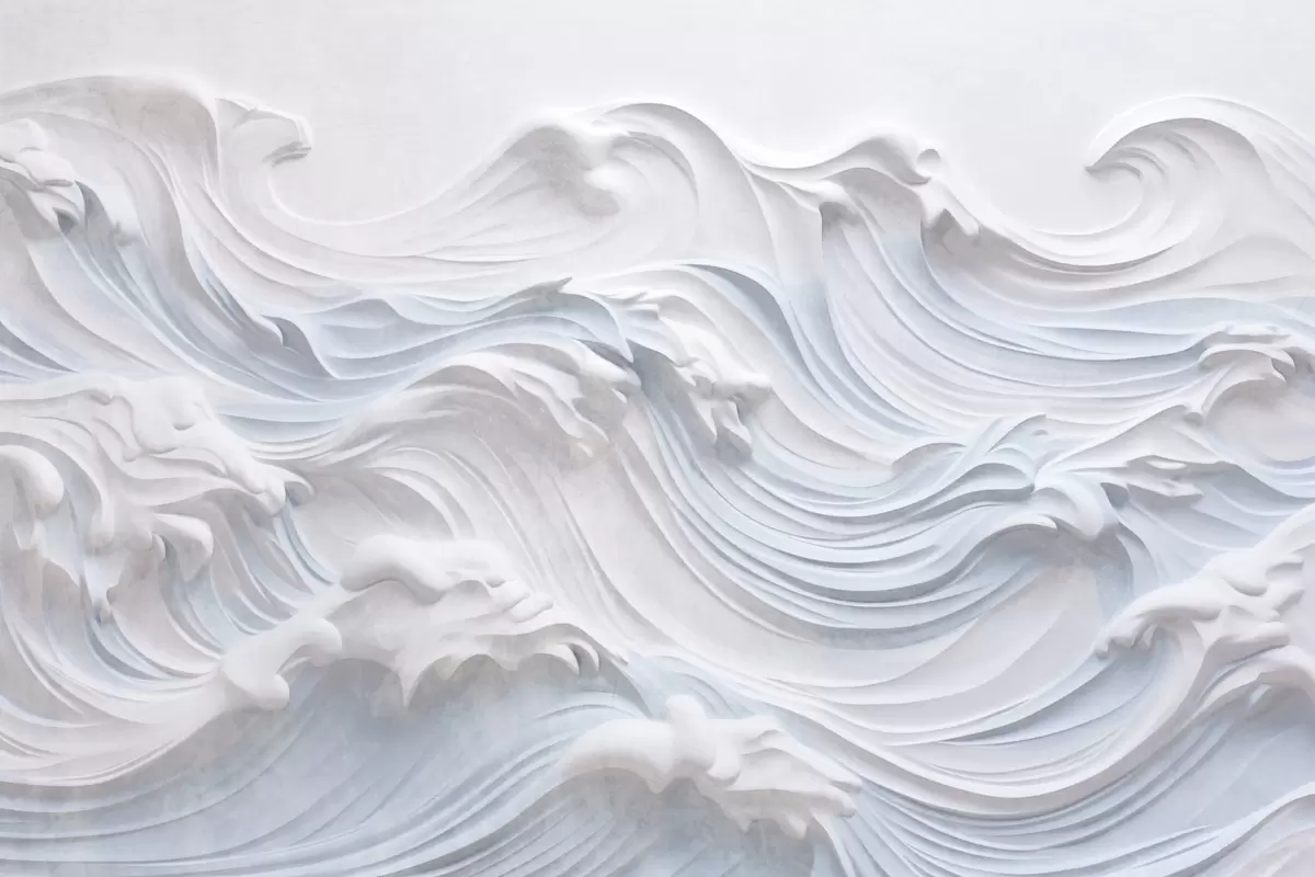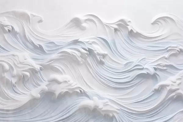 Fototapety Bílé a světle modré texturované abstraktní oceánské vlny s pěnou, tekoucí zleva doprava, dynamický a texturovaný potisk Č. w09266