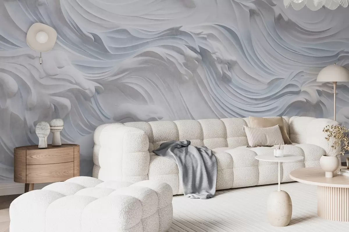 Fototapet Bílé a světle modré texturované abstraktní oceánské vlny s pěnou, tekoucí zleva doprava, dynamický a texturovaný potisk w09266