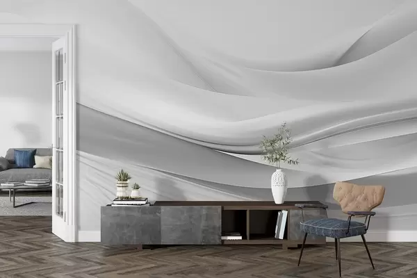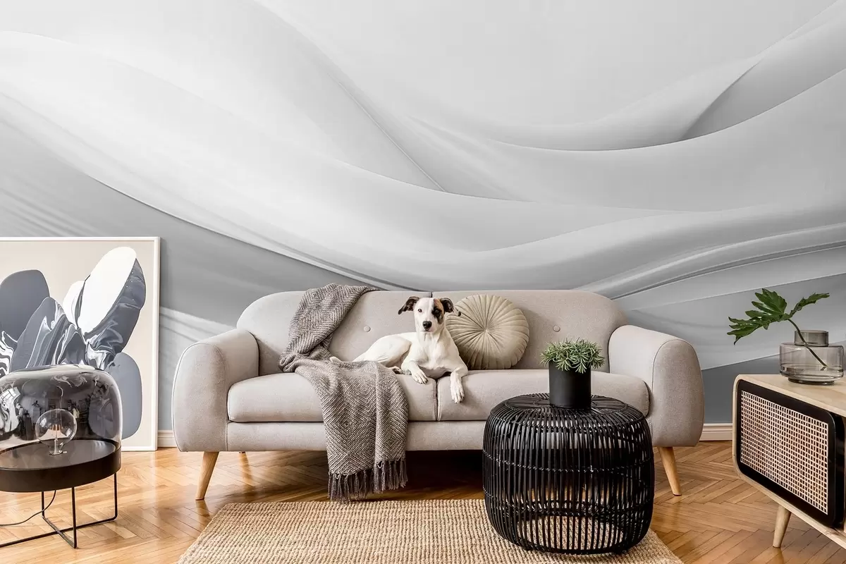 Fototapety Šedé látkové vlny v minimalistickém abstraktním stylu Č. w09279v1