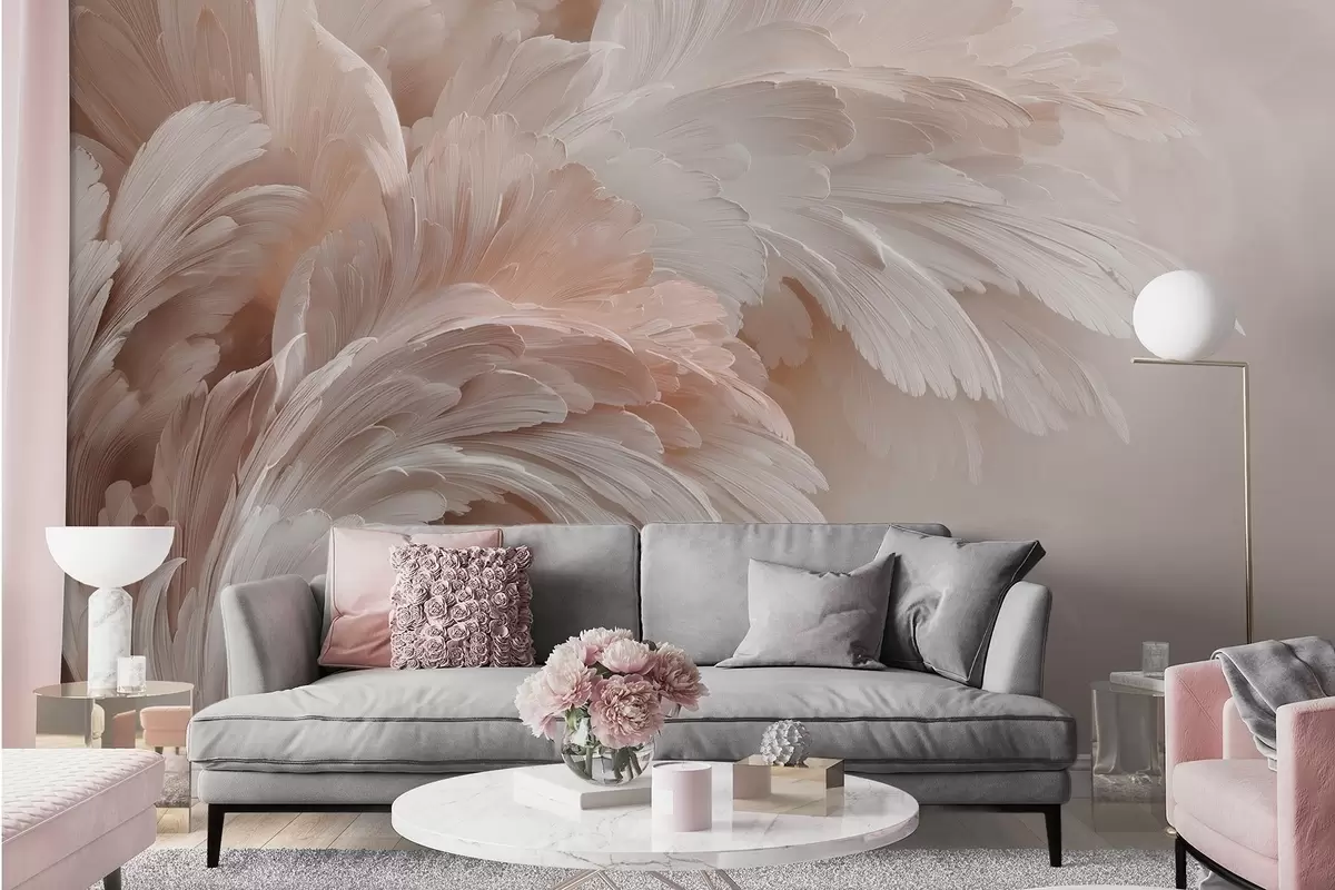 Fototapety Vzdušná pírka a okvětní lístky v krémově růžových odstínech Č. w09301