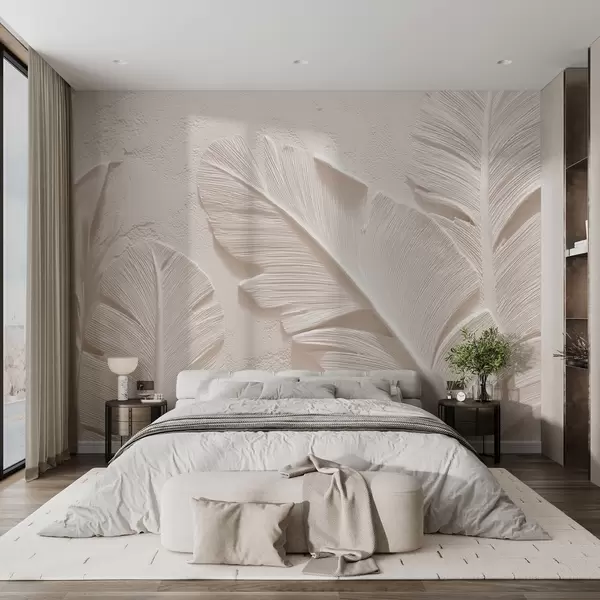 Fototapety Reliéfní listy v teplých béžovo-pískových tónech Č. w09307v1