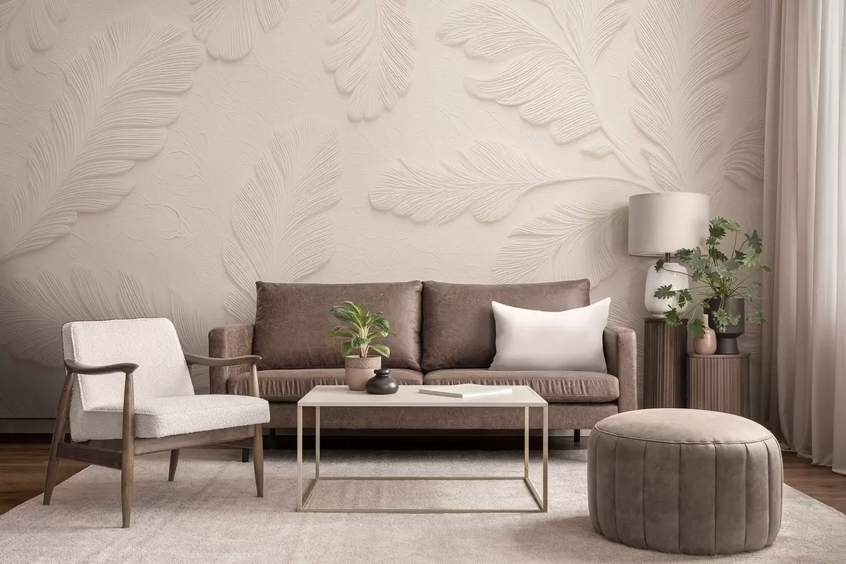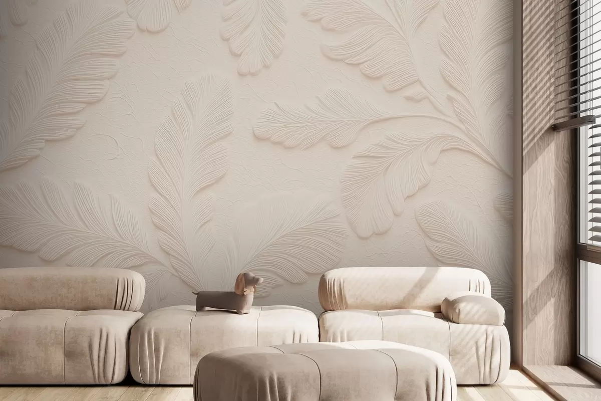 Fototapet Reliéfní listy na světlém pozadí s popraskaným efektem w09309