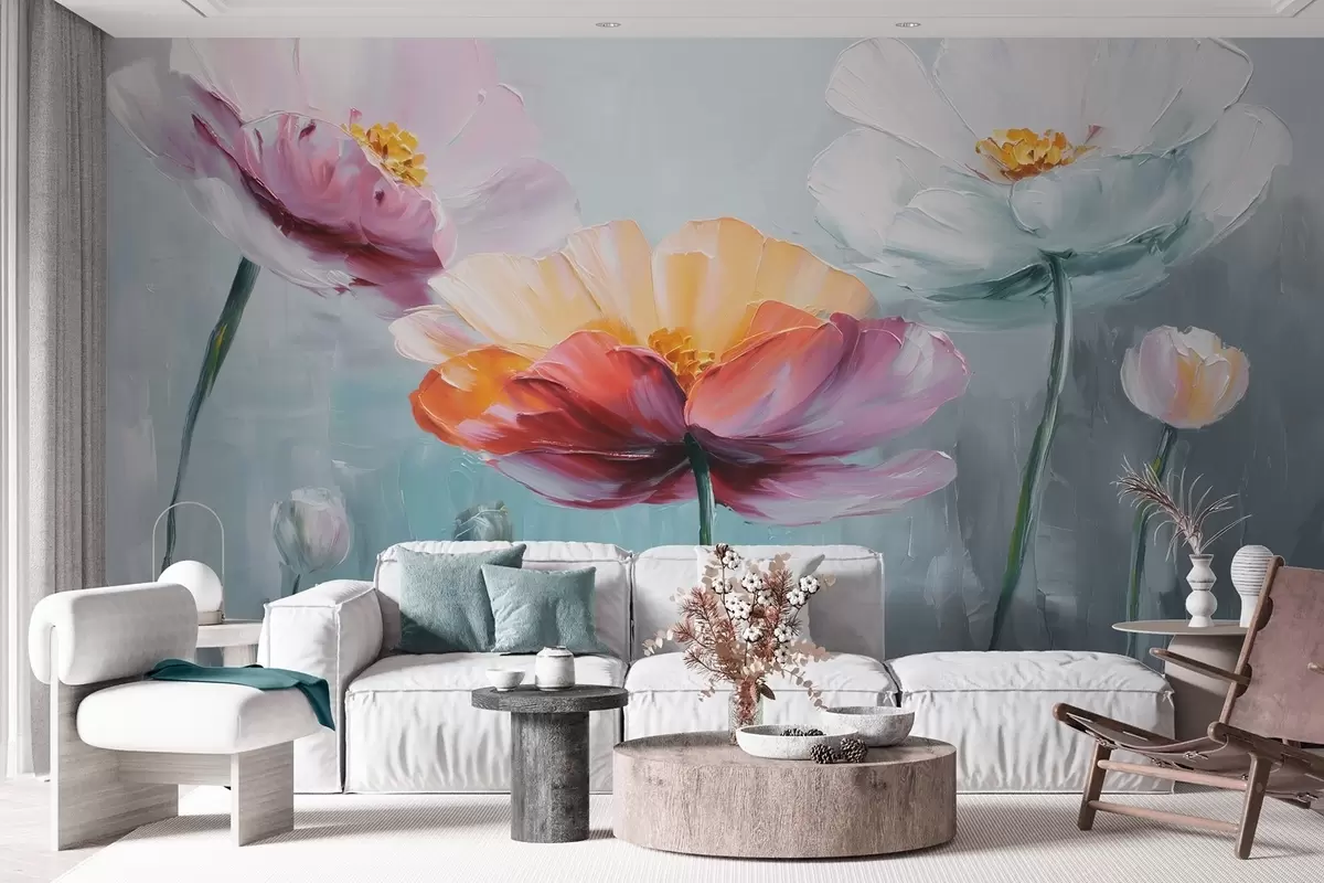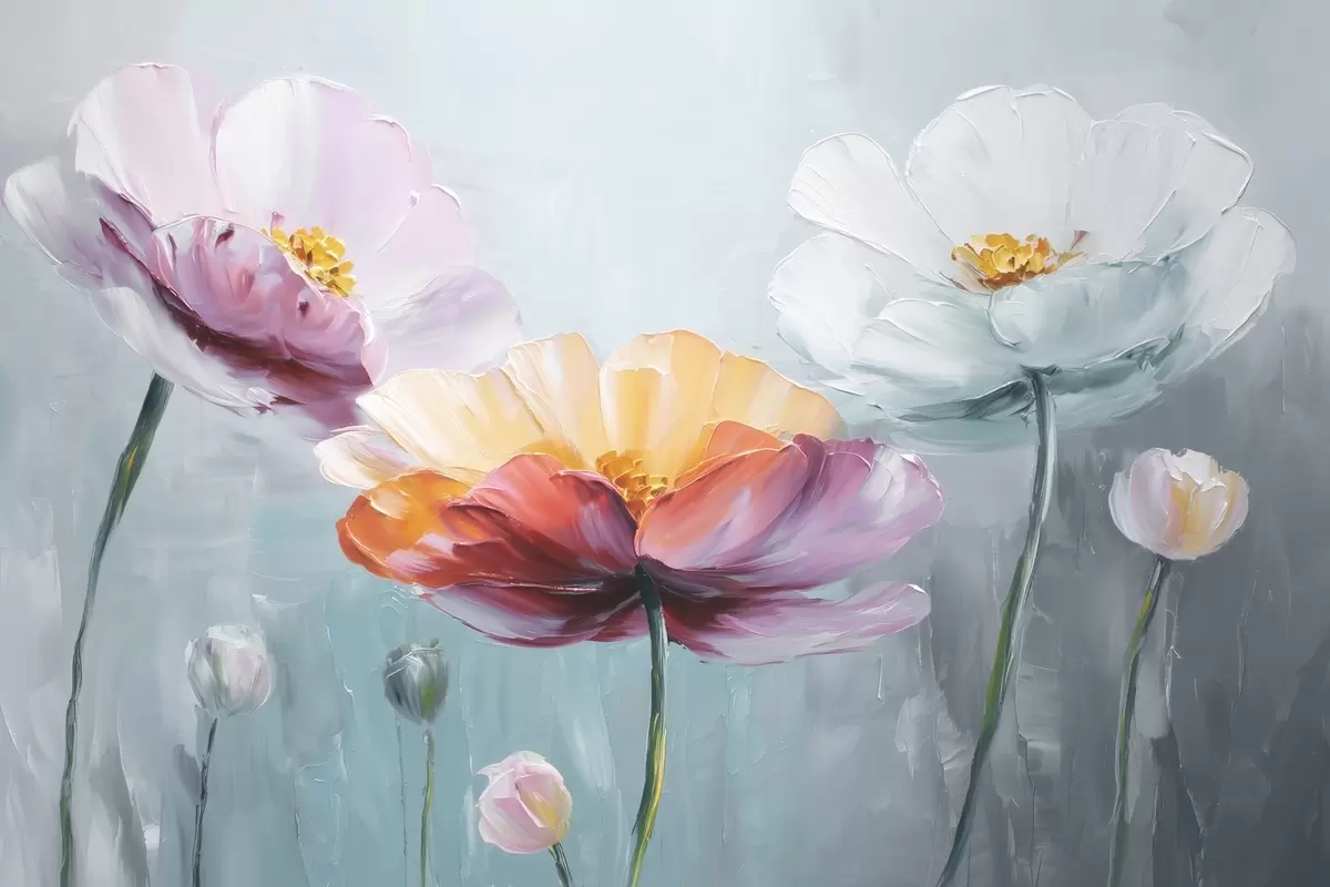 Fototapety Světlé květiny v technice olejomalby na modrém pozadí Č. w09310