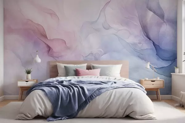Fototapety Abstraktní malba s texturou a plynulými pastelovými odstíny růžové, fialové a modré, které vytvářejí jemný efekt Č. w09318