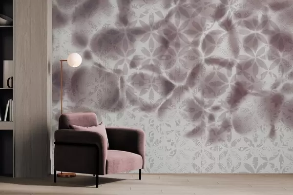 Fototapety Abstraktní texturované umění s květinovým potiskem bordo, vybledlým a rozmazaným efektem, vytvářejícím jemnou a zasněnou atmosféru Č. w09322v1