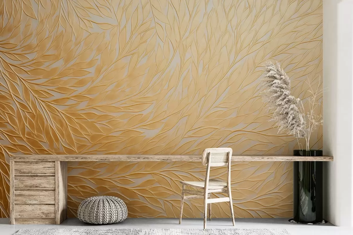 Fototapety Reliéfní vzor listů v teplých medově žlutých tónech Č. w09325