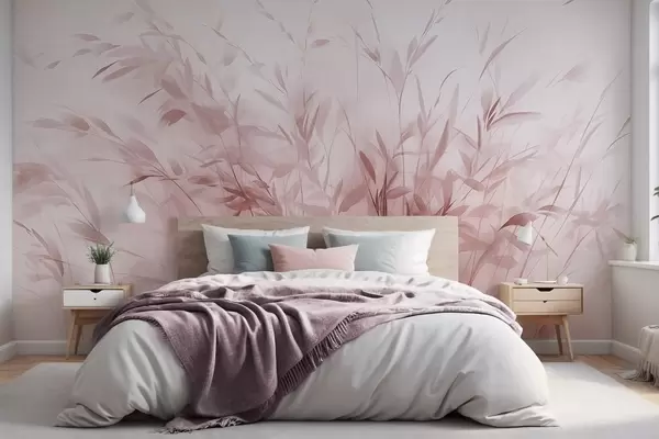 Fototapet Tráva a plevel s tenkými listy a stonky, světle růžové barvy, měkké a jemné tahy štětcem, minimalistický tisk w09342v2