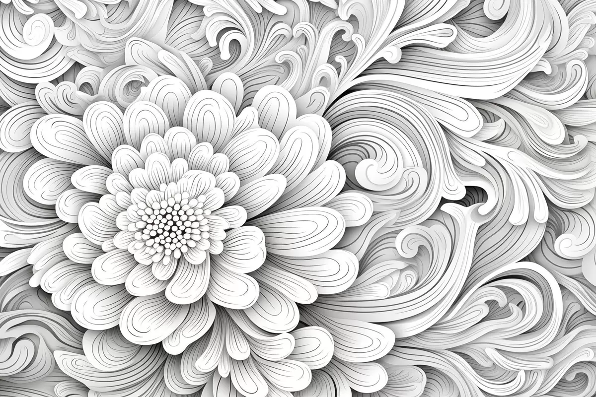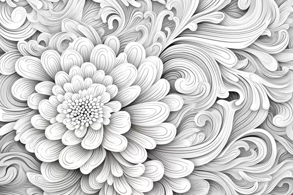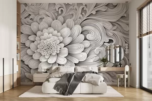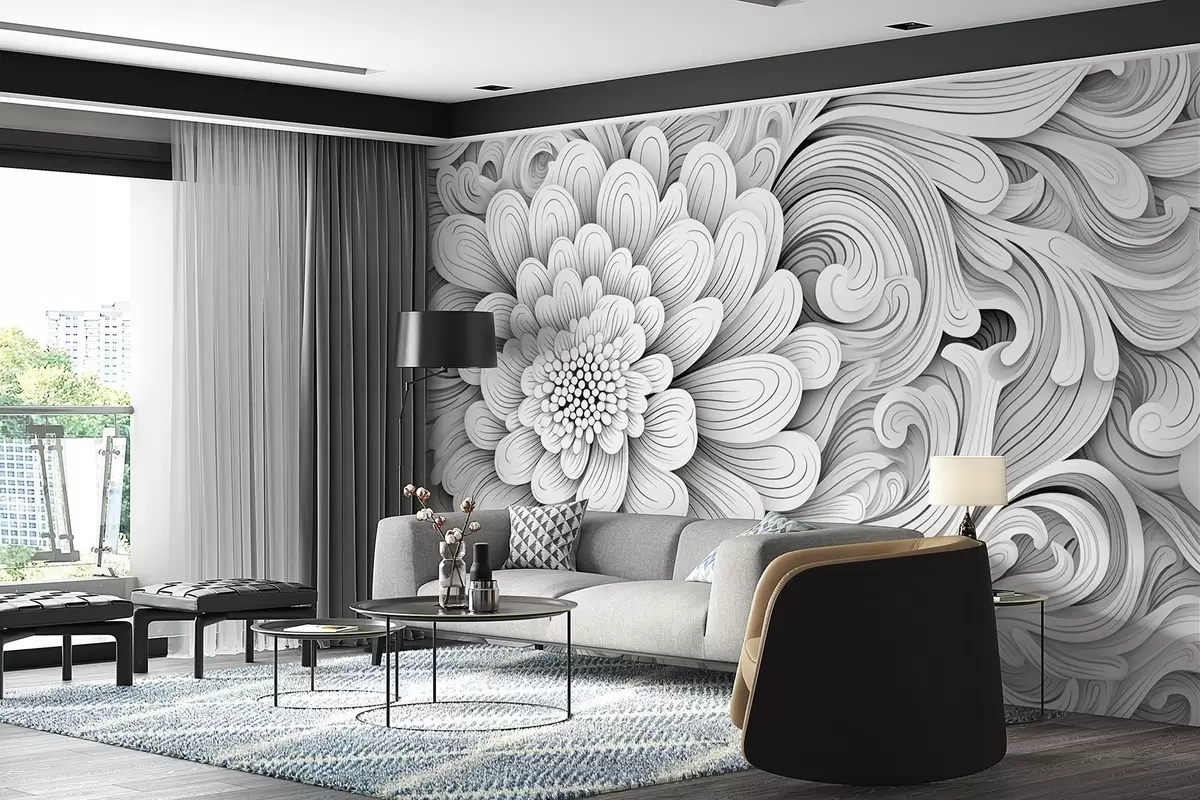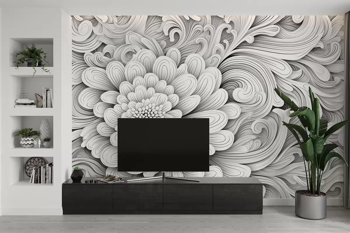 Fototapety Dekorativní černobílý vzor v podobě květu a vírů Č. w09355