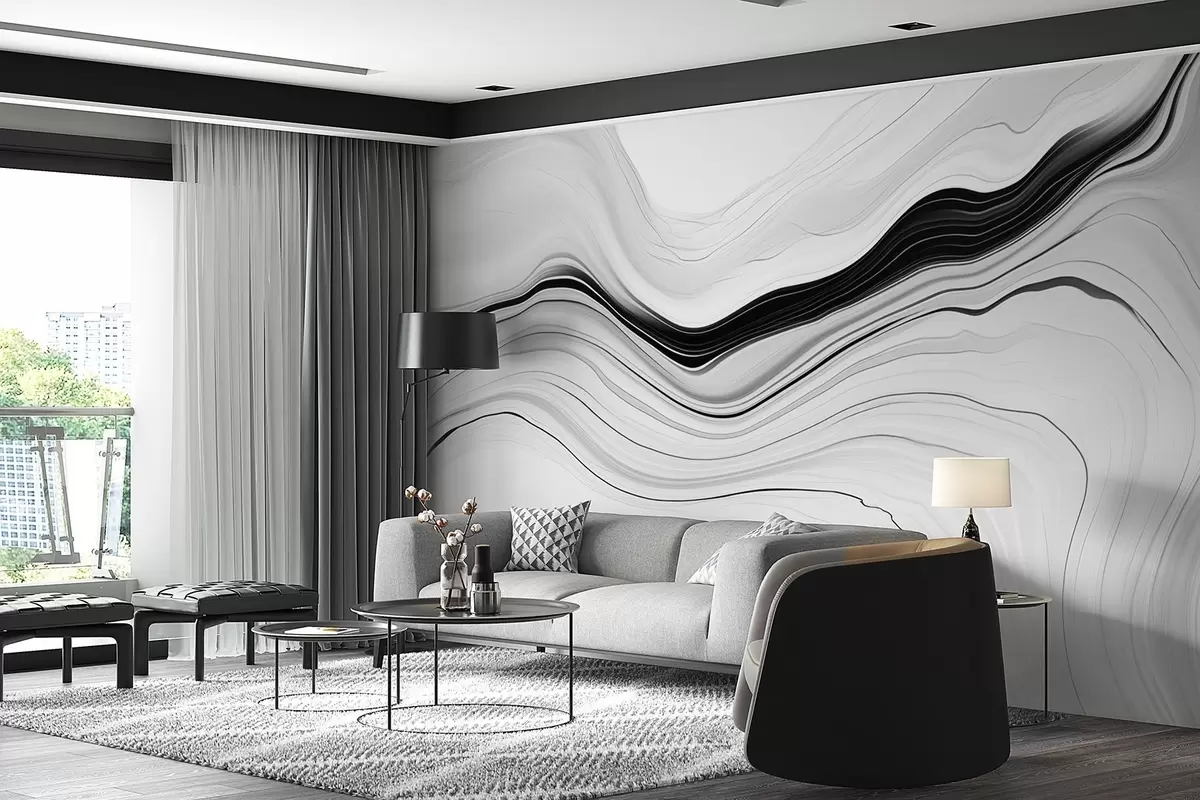 Fototapety Černobílý vzor s efektem mramorových vrstev Č. w09358