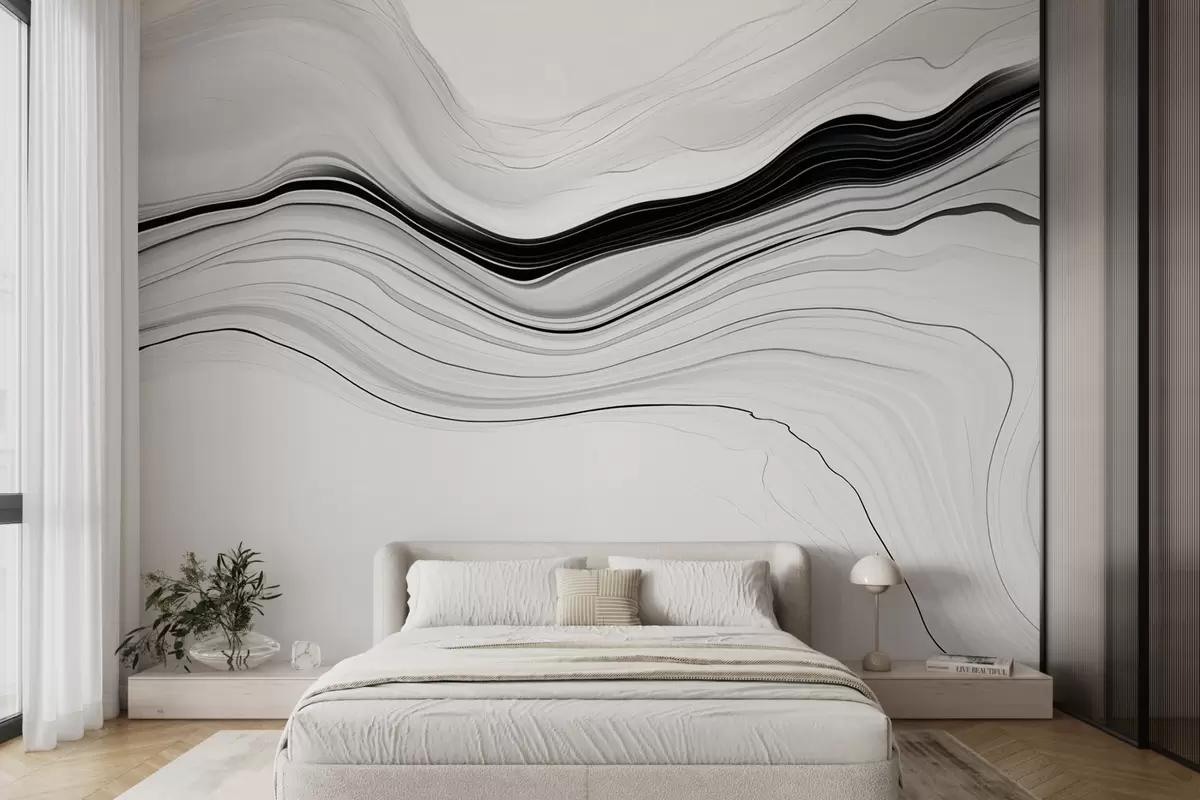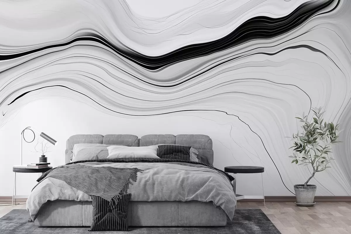 Fototapety Černobílý vzor s efektem mramorových vrstev Č. w09358