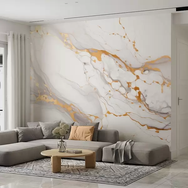 Fototapety Imitace mramorové struktury s jemnými šedými přechody a žlutými akcenty Č. w09362