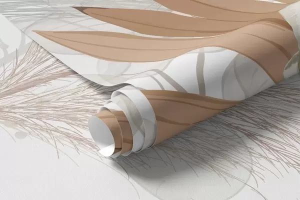Fototapety Pampová tráva, eukalyptus, tropické listy a orchideje na bílém pozadí, pastelové barvy Č. w09366