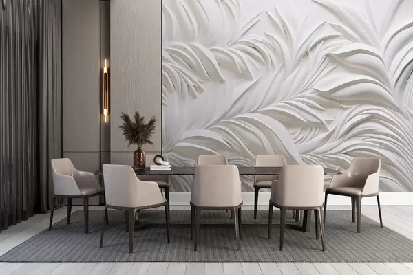 Fototapety Abstraktní texturované bílé listy a květinové prvky, minimalistická estetika Č. w09378