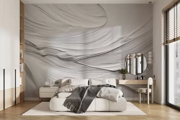 Fototapety Abstraktní texturované bílé tahy štětcem imitující vířící vzor, neutrální, minimalistická moderní kompozice Č. w09394