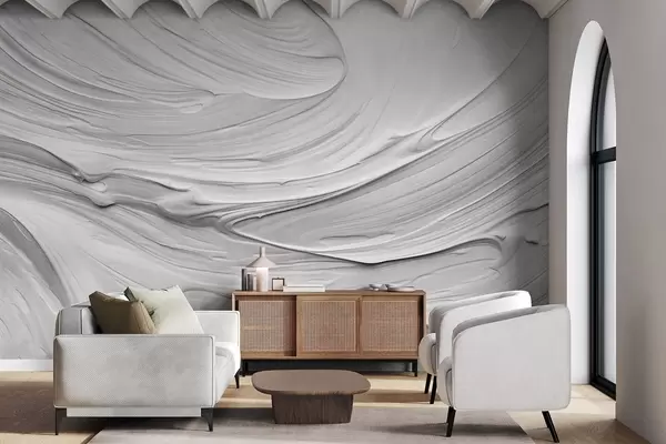 Fototapety Abstraktní texturované bílé tahy štětcem imitující vířící vzor, neutrální, minimalistická moderní kompozice Č. w09394